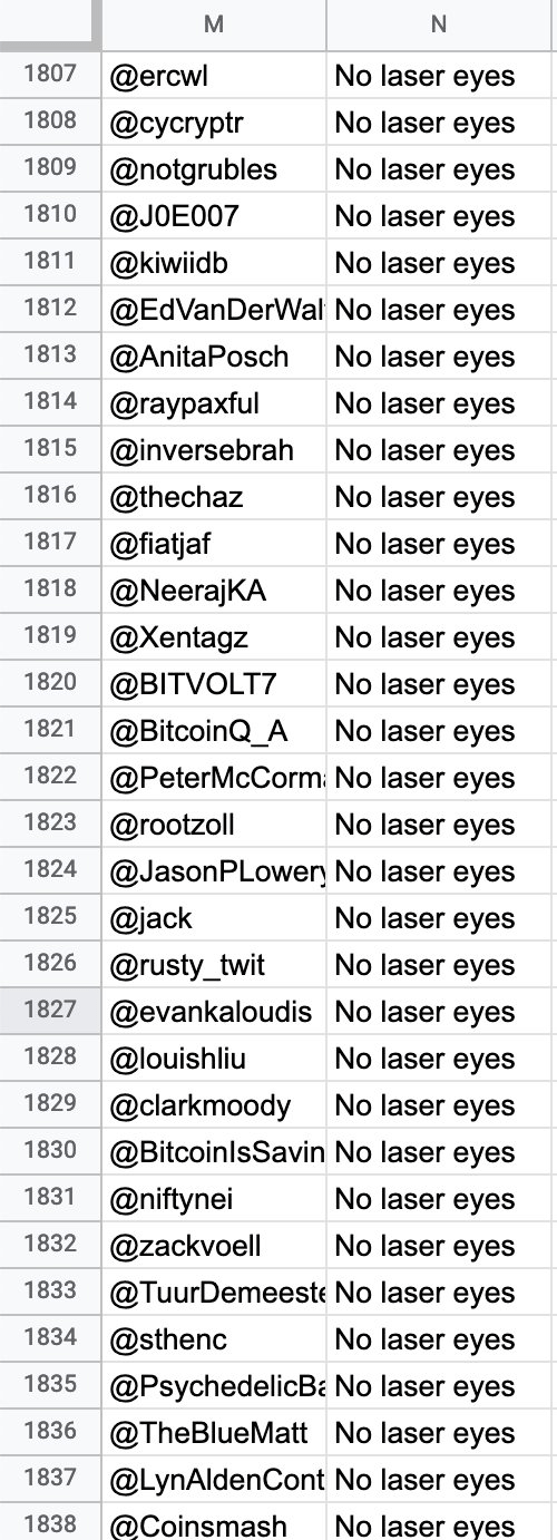 Y’all thought i was joking when i said i’m keeping a list of everyone who removed their laser eyes before 100k